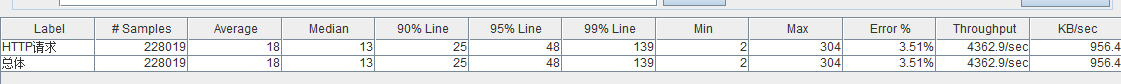 可以看到,Hello World的吞吐量为4363,其中一直飙到5000,但这个时候开始出现错误了,稳定性上面打折扣,平均值18ms,90%在25ms以内,速度上还可以。接下来看看Nginx+PHP组合的Hello World